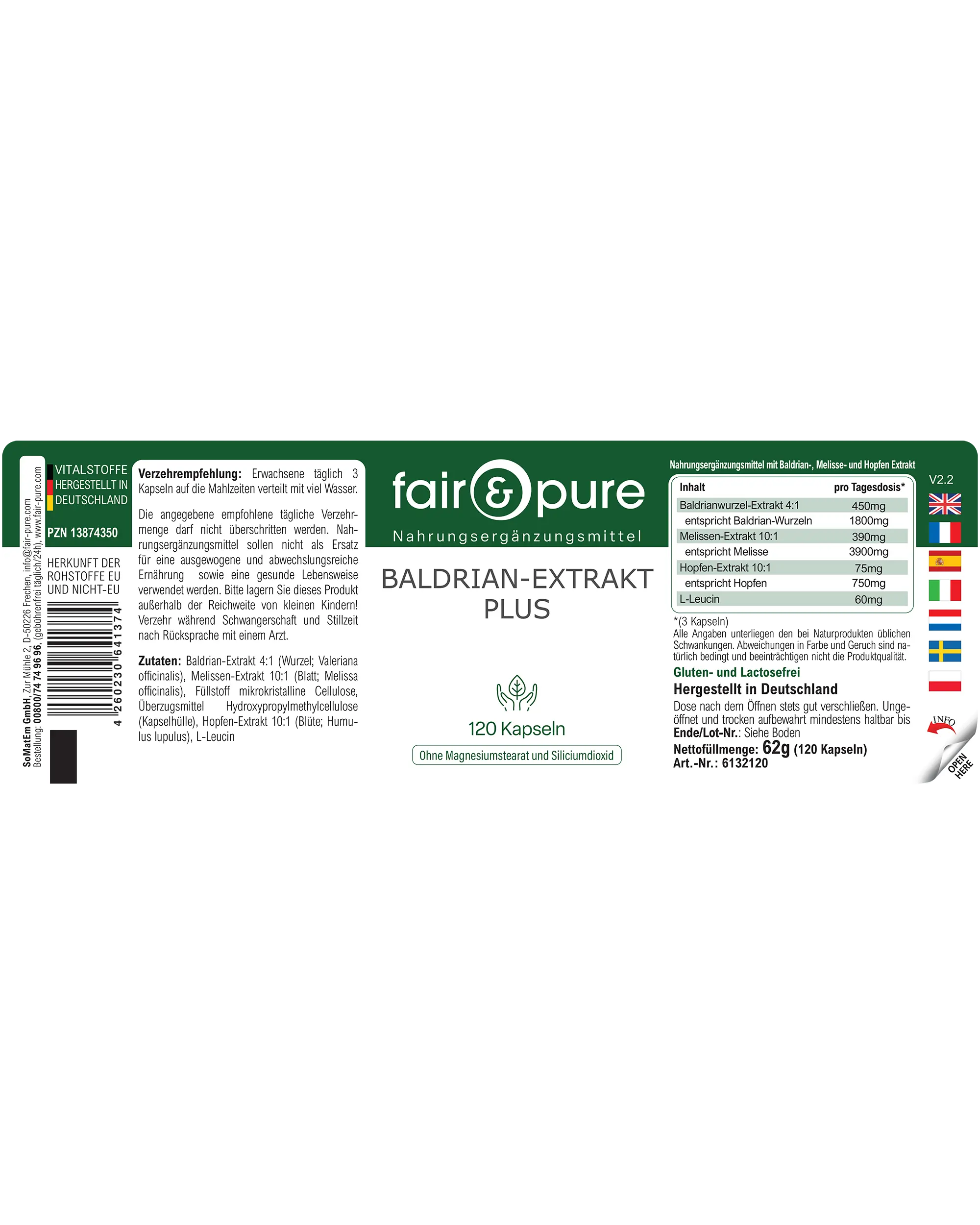 Produktinformationen "Baldrian-Extrakt Plus - 120 Kapseln - schluckfreundlich | fair-pure"