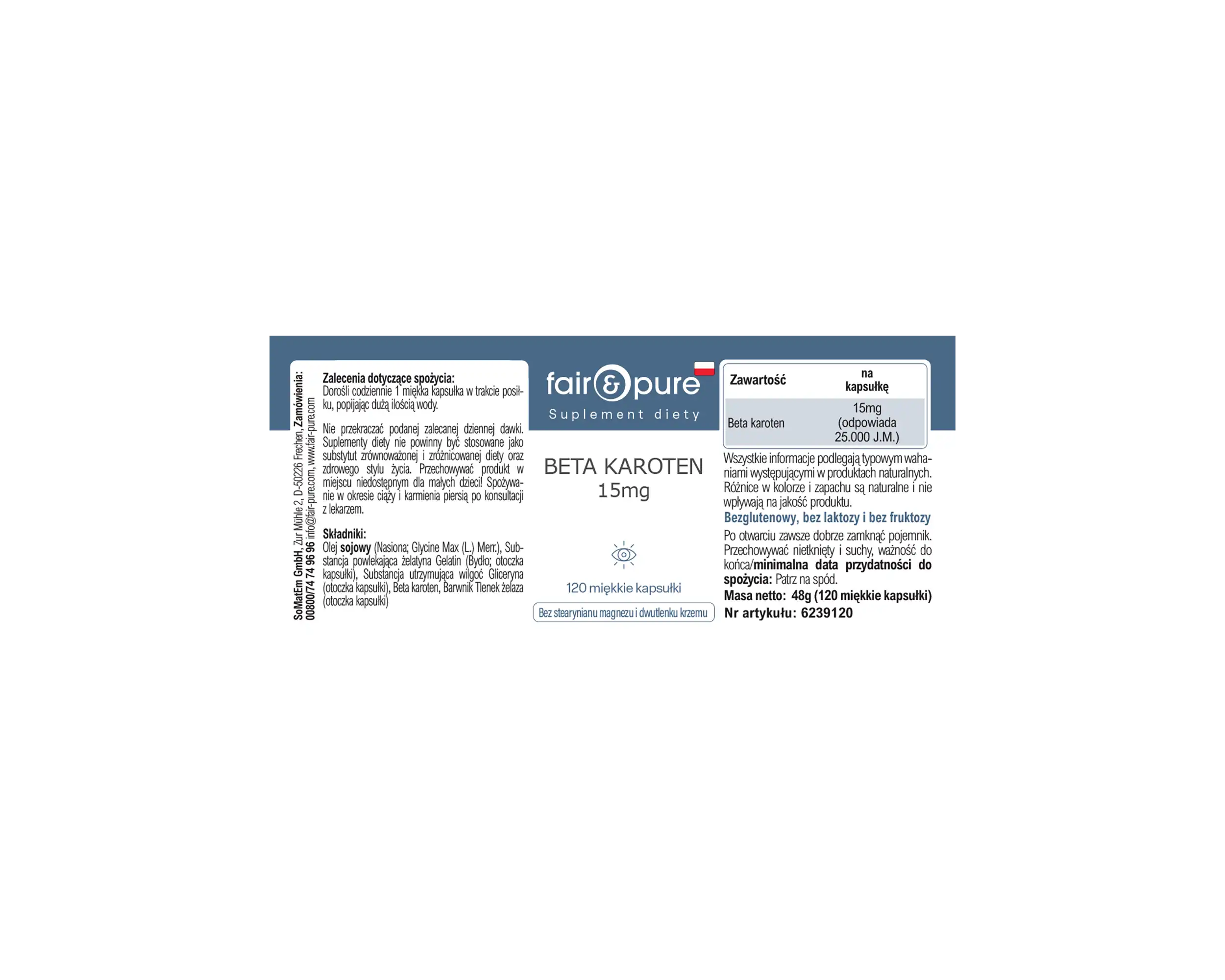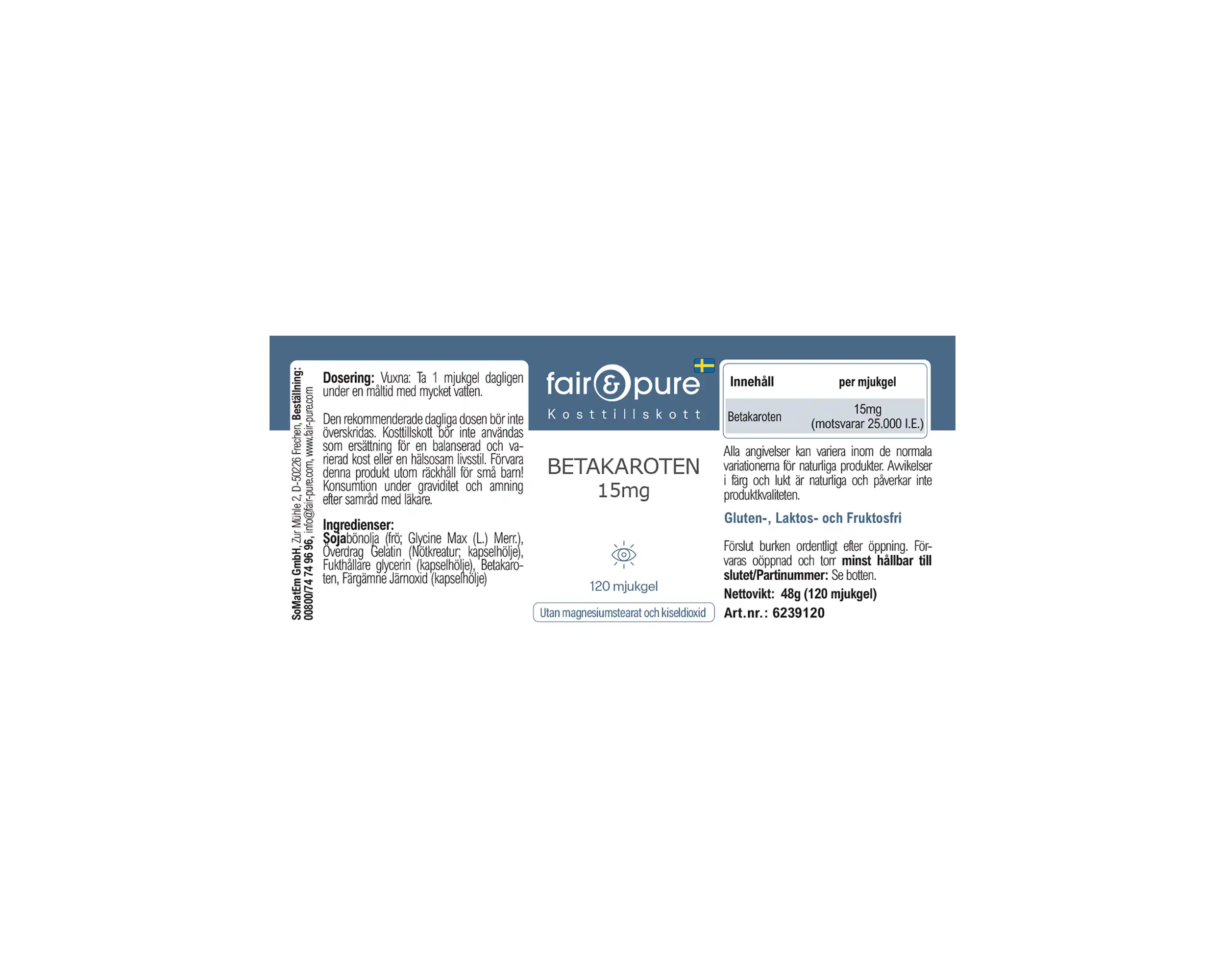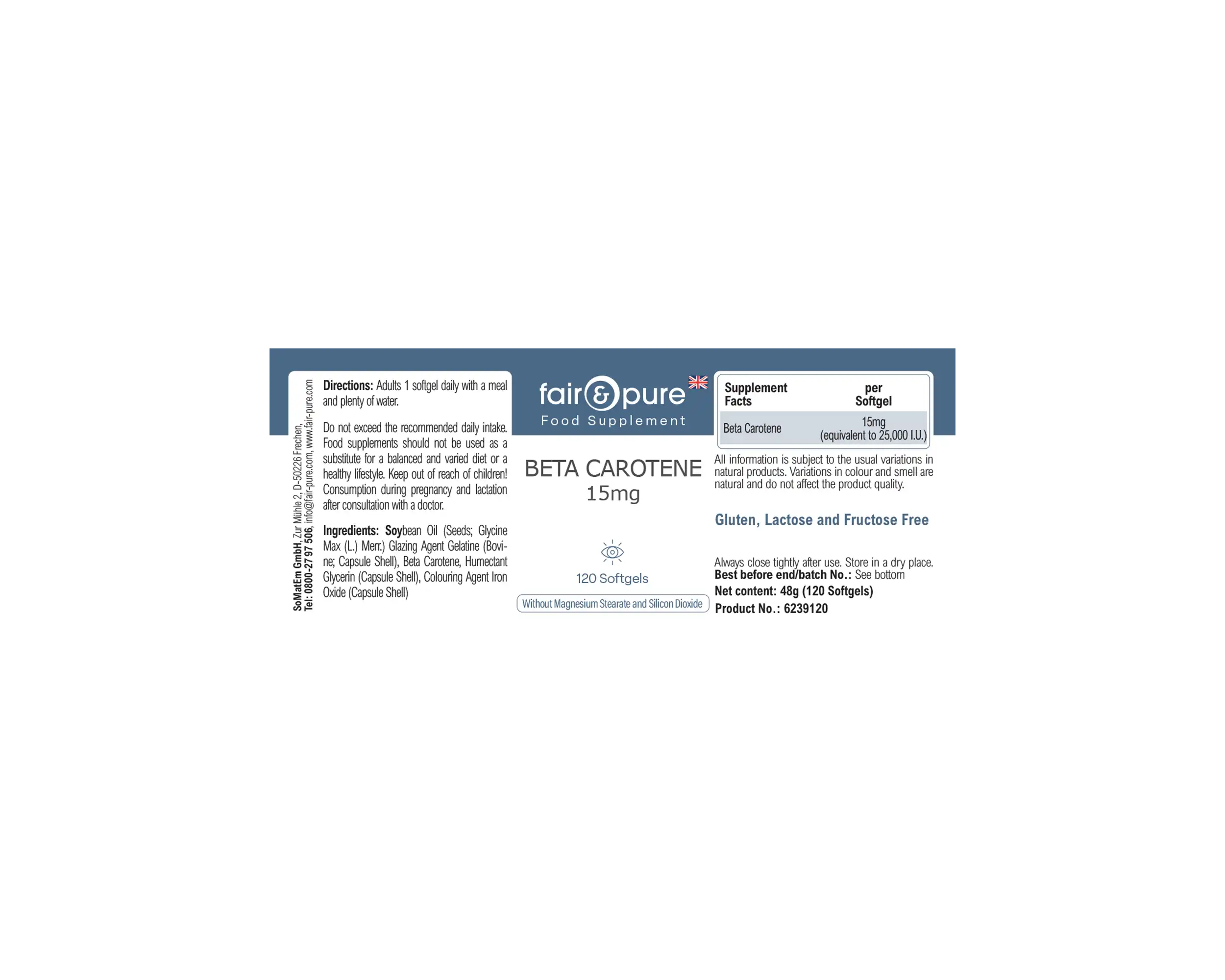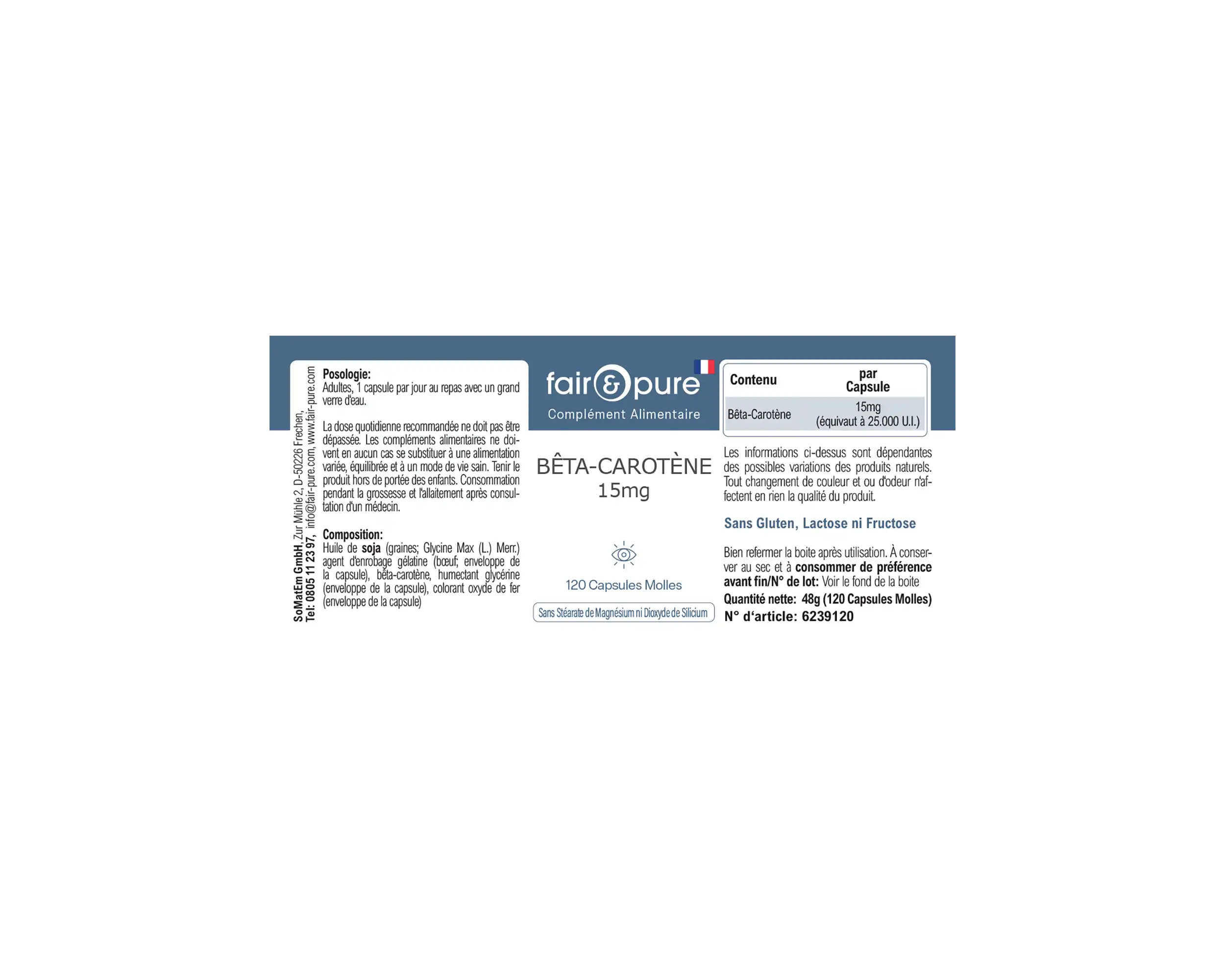 Información sobre el producto "Beta-caroteno 15mg - 120 Softgels | fair-pure"