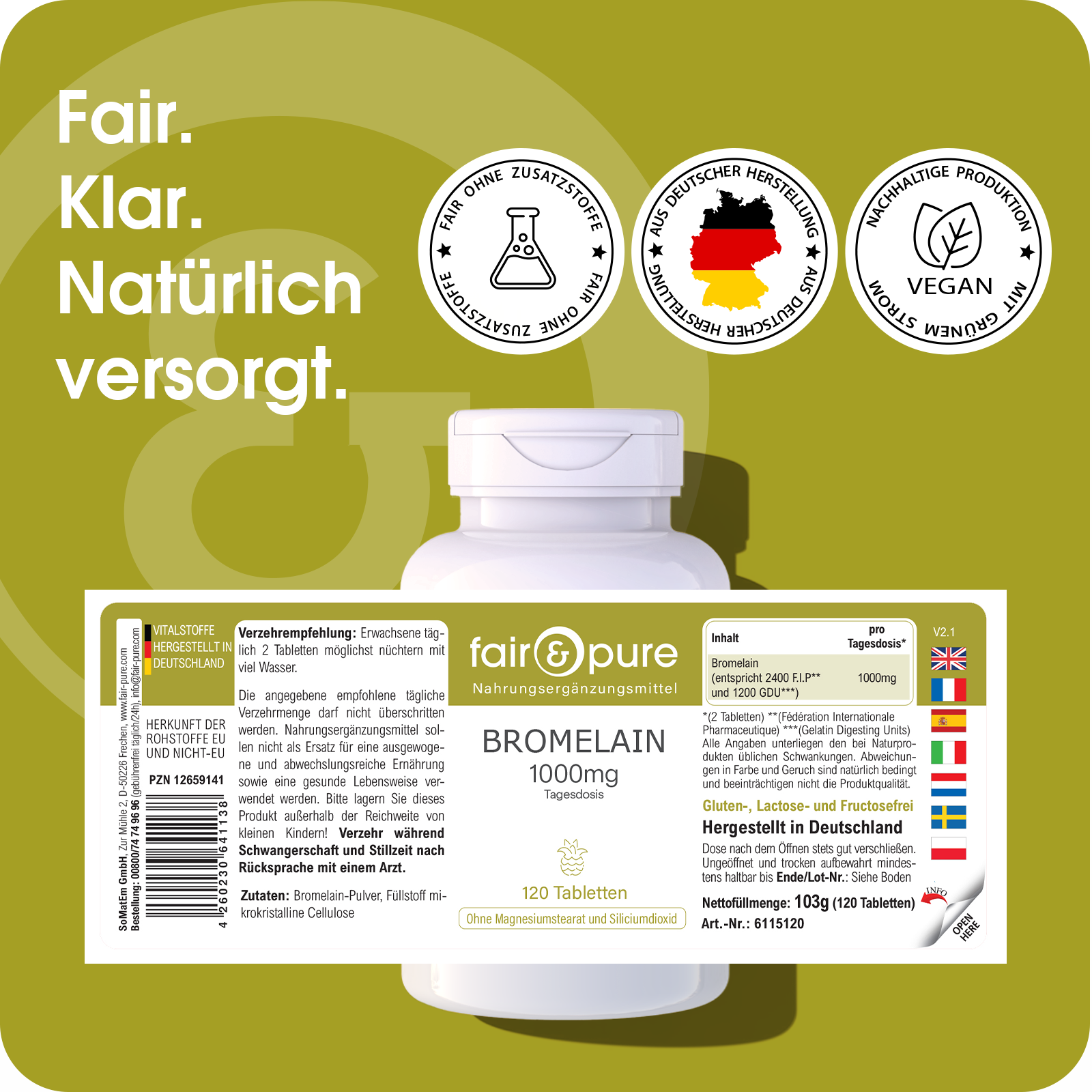 Información sobre el producto "Bromelina 1000 mg dosis diaria - 120 comprimidos | fair-pure"