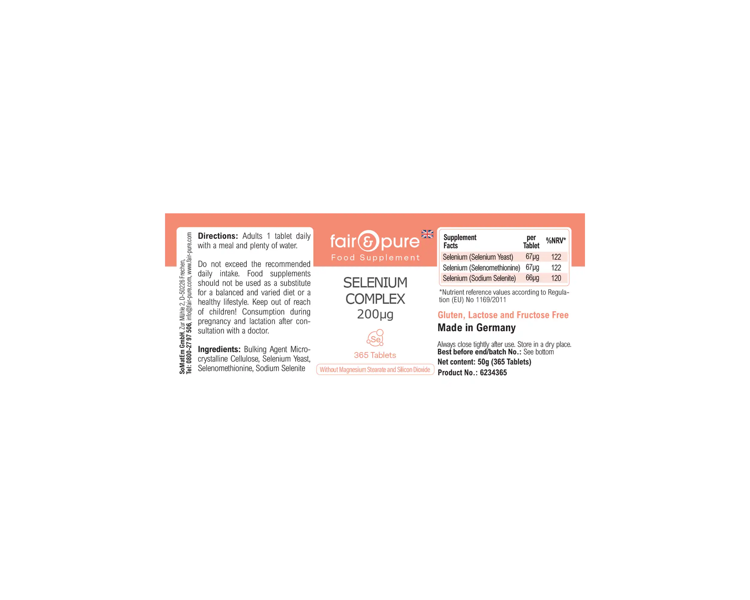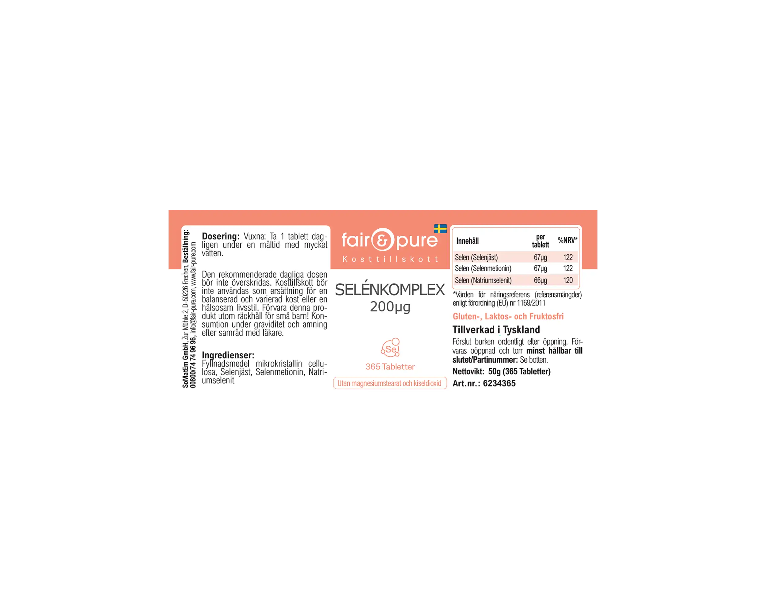 Información sobre el producto "Complejo de selenio 200 µg - 365 comprimidos - para el sistema inmunológico y la tiroides | fair-pure"