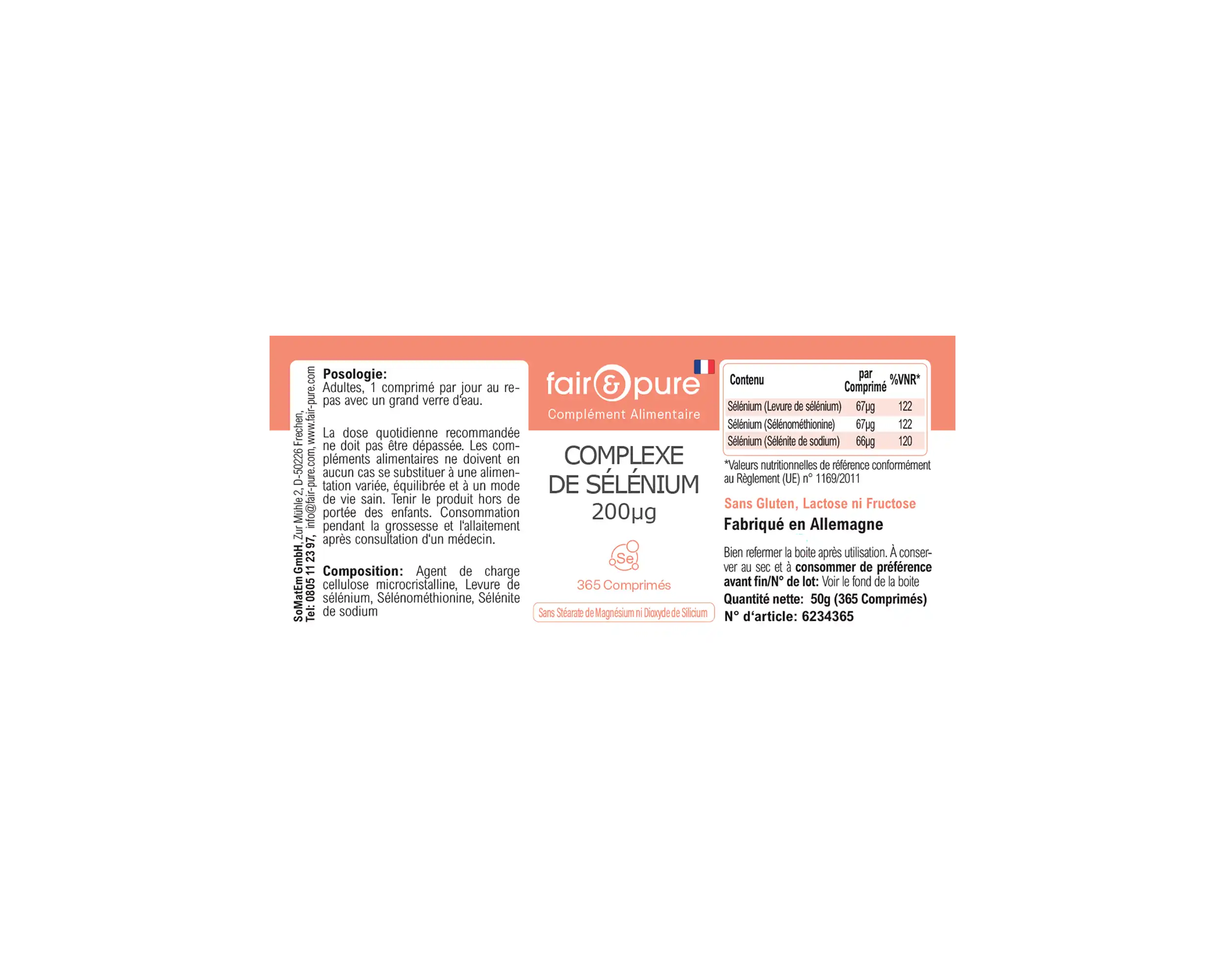 Complejo de selenio 200 µg - 365 comprimidos - para el sistema inmunológico y la tiroides | fair-pure