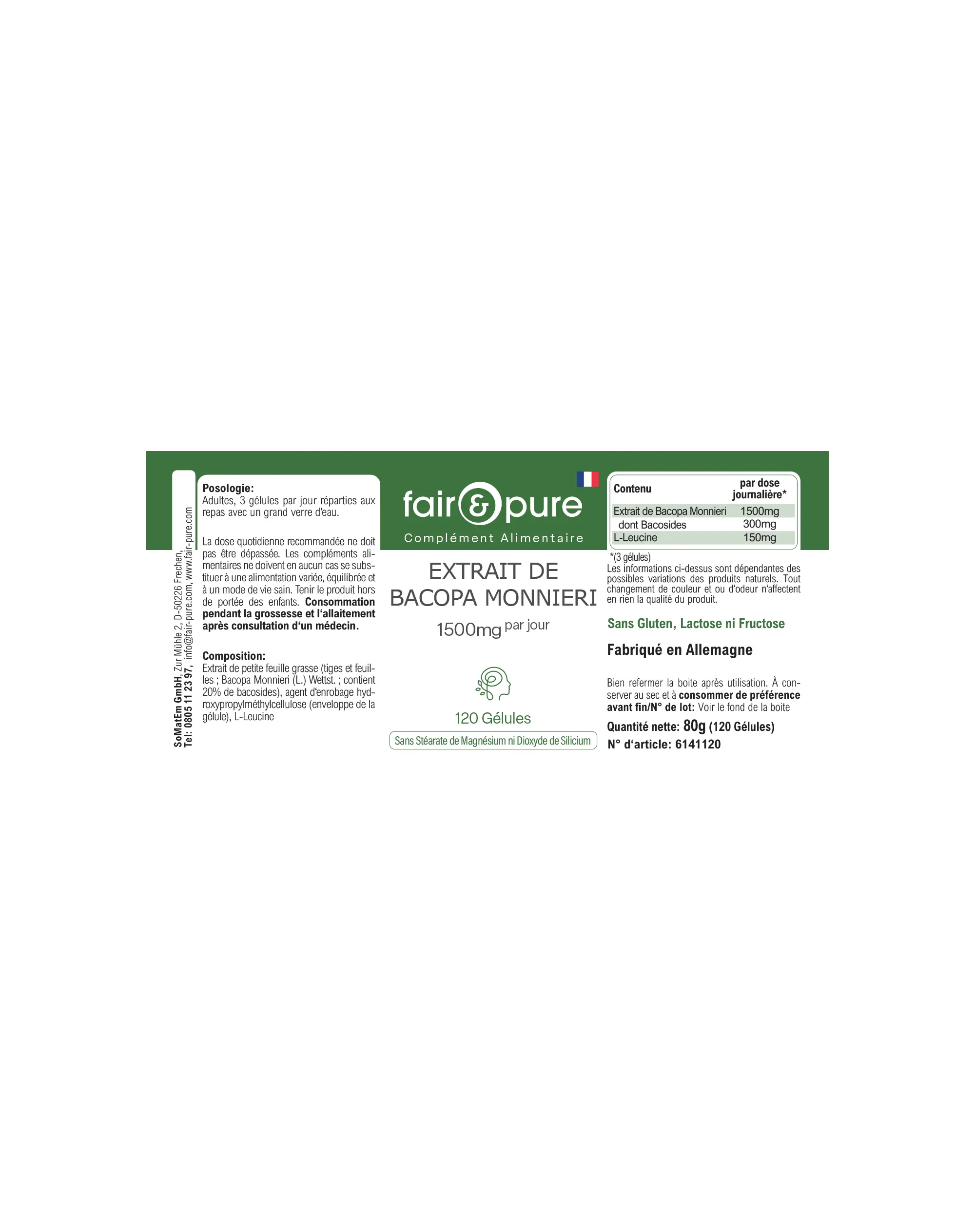 Informations sur les produits "Extrait de Bacopa Monnieri 1500mg"