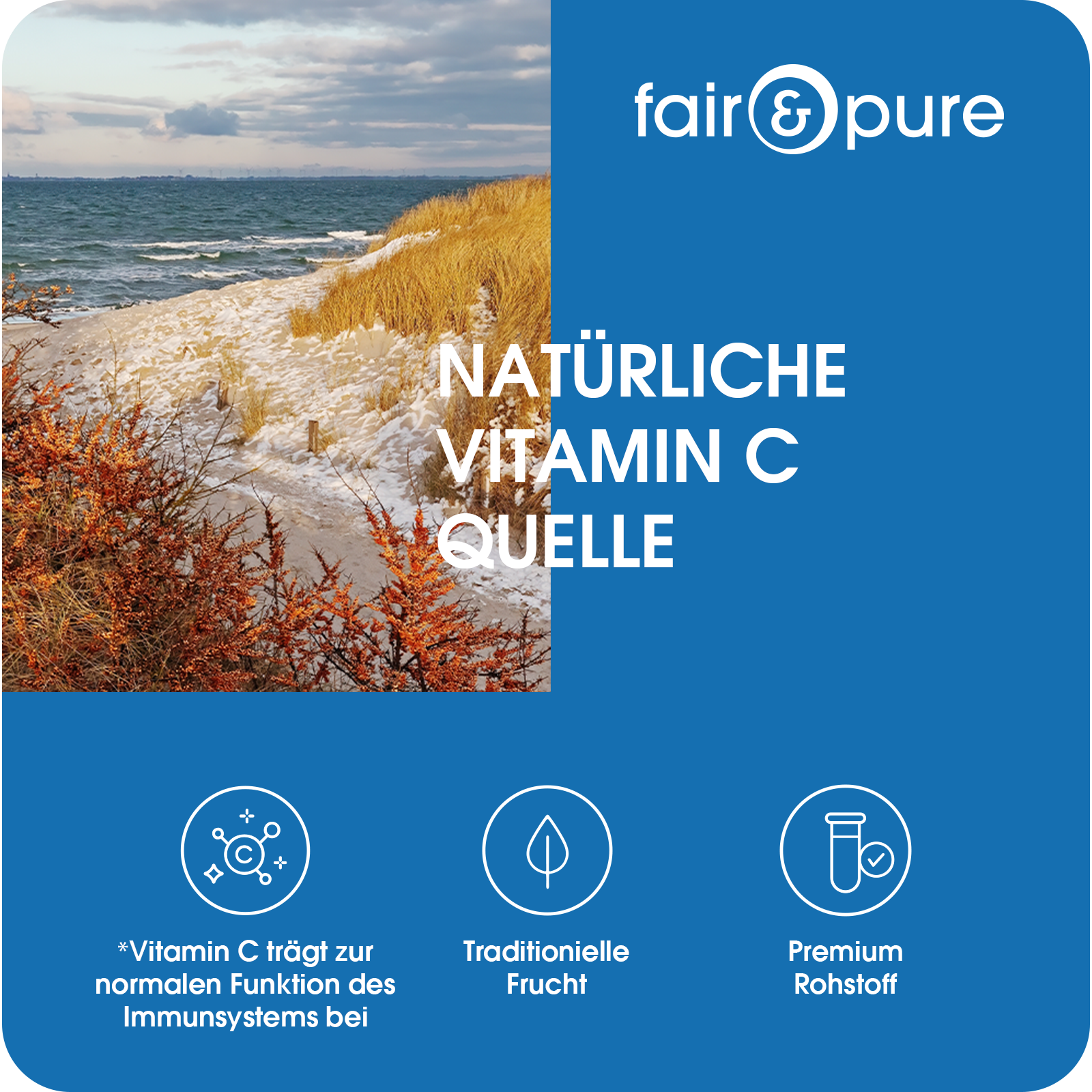 L'argousier est un arbuste qui pousse dans toute l'Europe. La vitamine C fortement concentrée est la substance la plus précieuse du fruit. En outre, l'argousier est riche en vitamine E et en minéraux tels que le fer, le calcium, le manganèse et le magnésium. Le fruit contient de la vitamine B12, que l'on trouve généralement dans les produits d'origine animale.