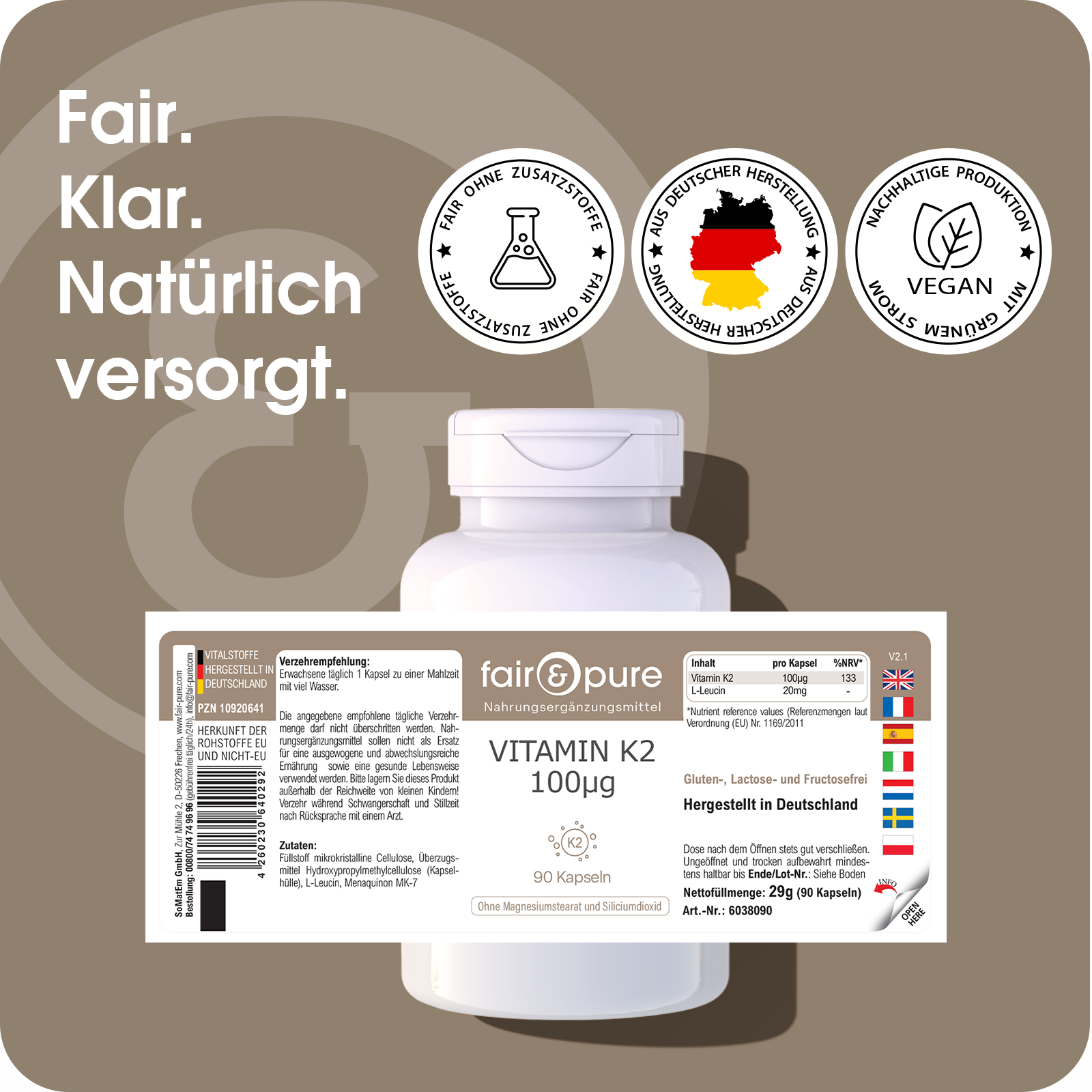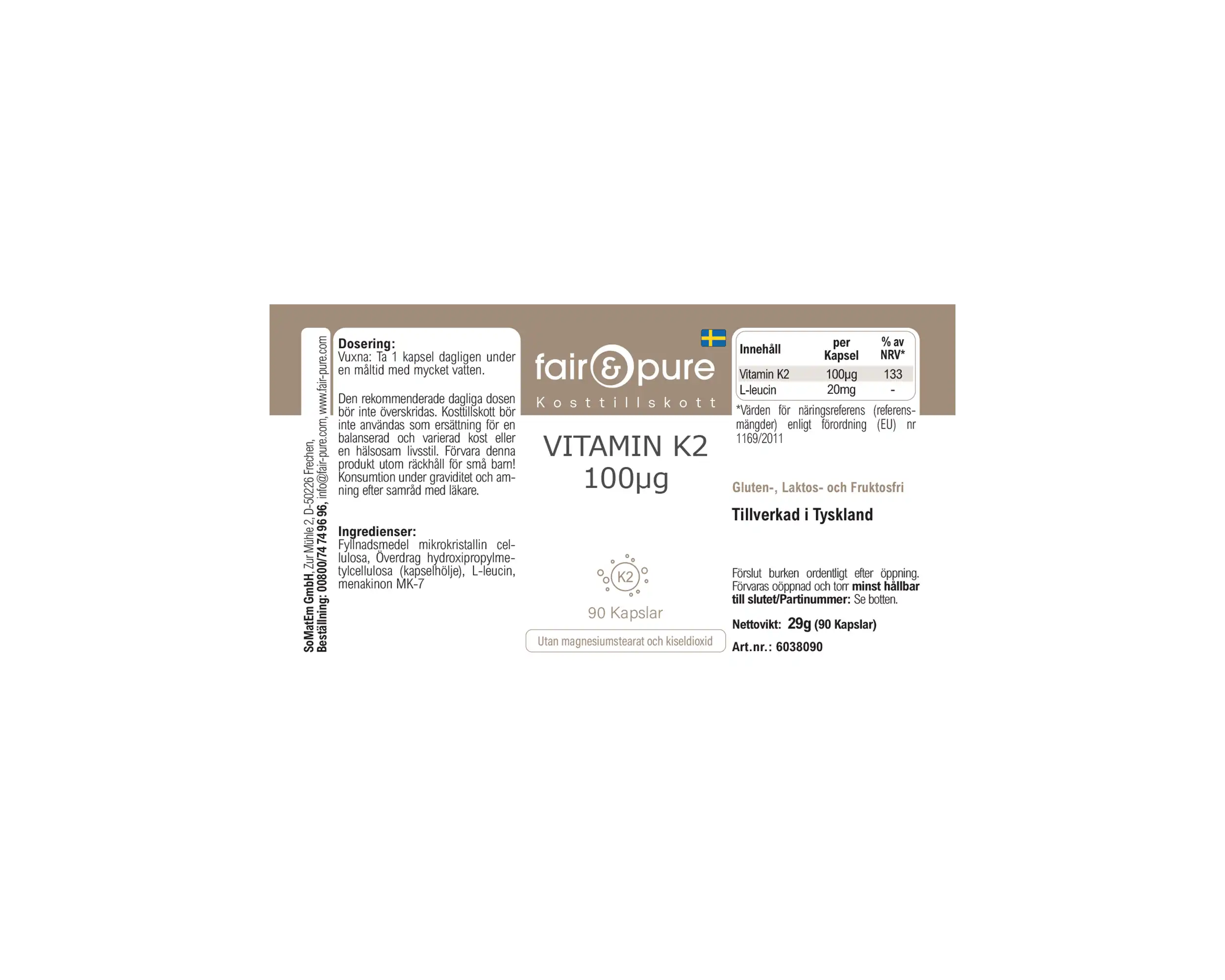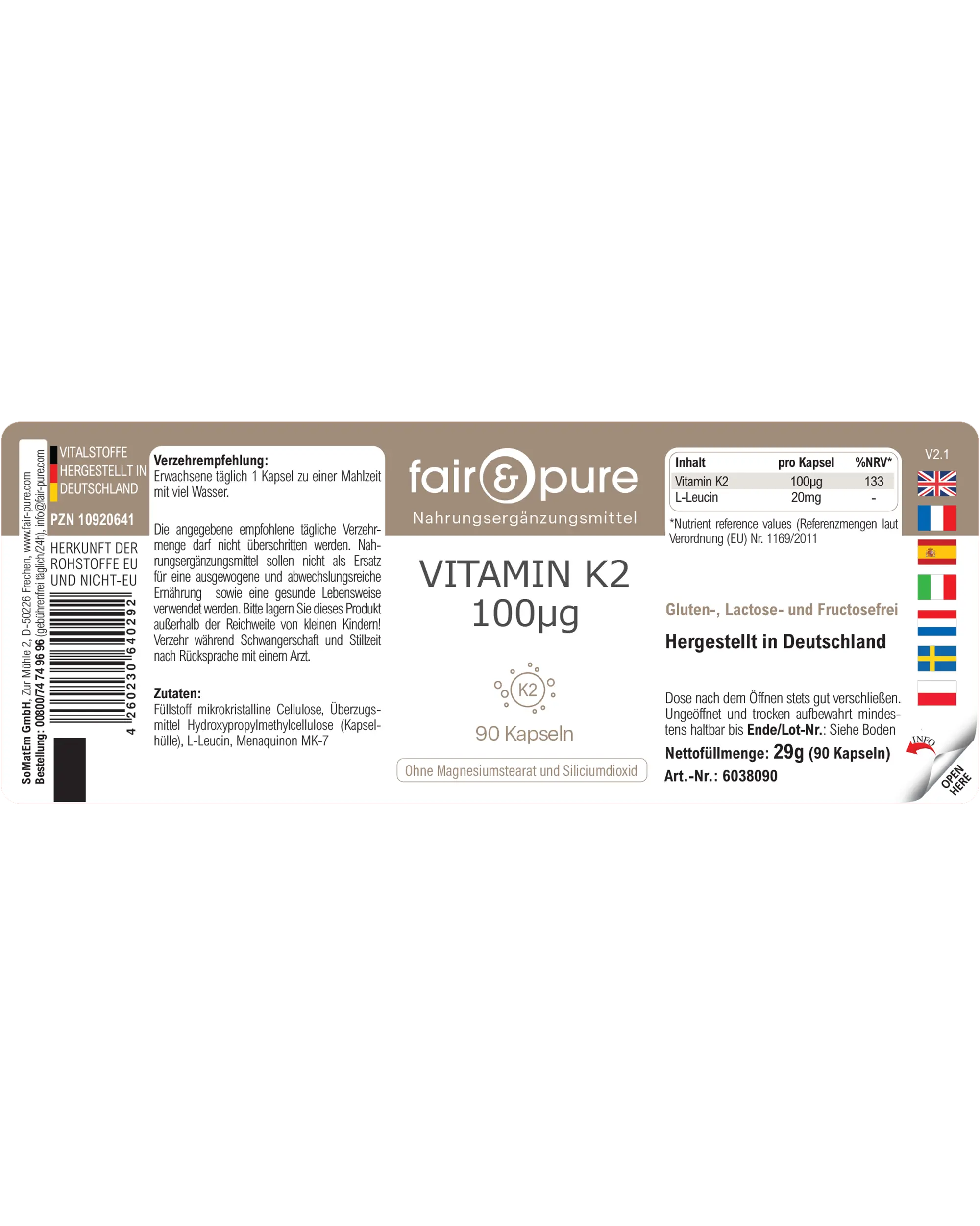 Agent de charge cellulose microcristalline, agent d'enrobage hydroxypropylméthylcellulose (enveloppe de la gélule), L-Leucine, ménaquinone MK-7, mélange d'extraits de riz
